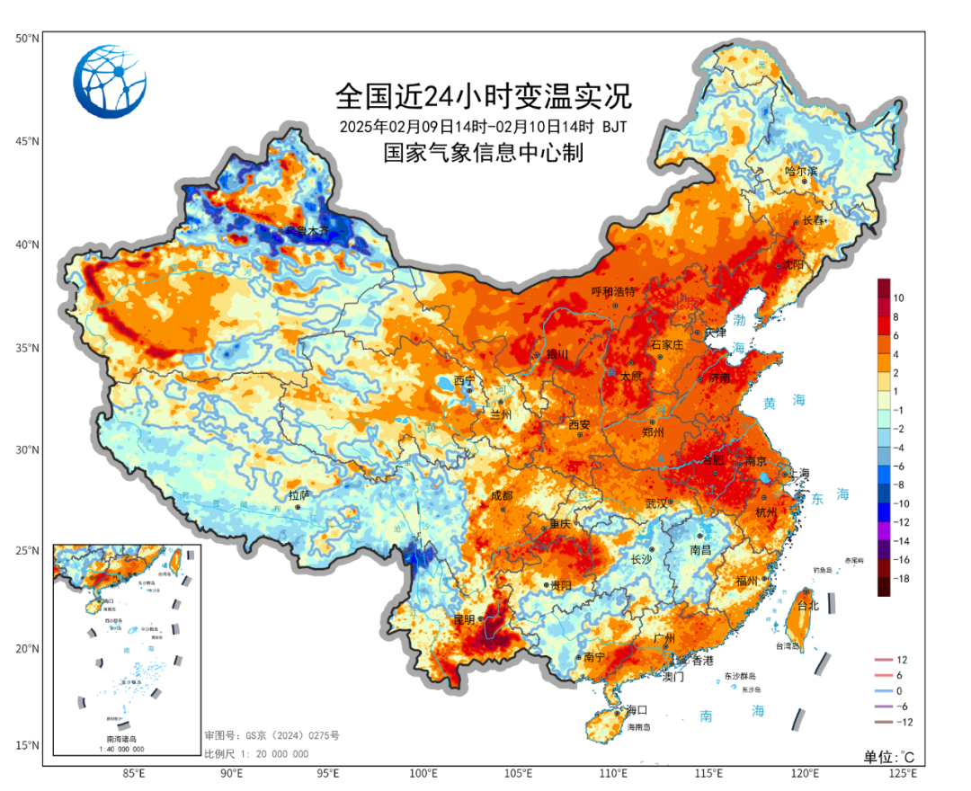 中央气象台预计,2月11日至12日,受冷空气影响,长江中下游及其以北地区将有4至6级偏北风,阵风7至8级,中东部地区气温下降4至8℃,局地降温幅度10℃左右,各地气温将再度降至较常年同期偏低水平。