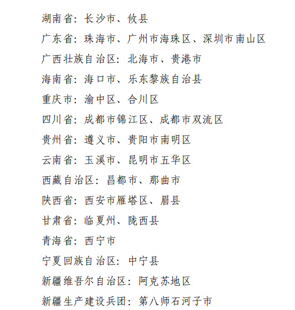 实验区名单的通知