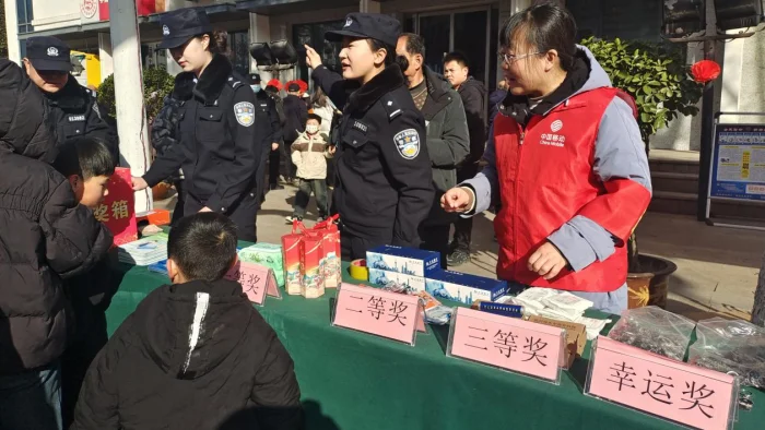 另一边的智趣猜谜关卡则更为火热。博物院一楼走廊上,悬挂了百余张字谜,游客们穿梭其中,纷纷凝神思索,不放过文字中的细小线索,片刻后眼神闪烁出光芒,激动的答出谜底。“大家正在参与的是‘文武双全闹元宵’活动,限时参与就能领取小礼品,挑战成功还可以把精美文博周边带回家。”郑州商代都城遗址博物院社会教育部负责人展示了本次活动特设的丰富文创奖品。