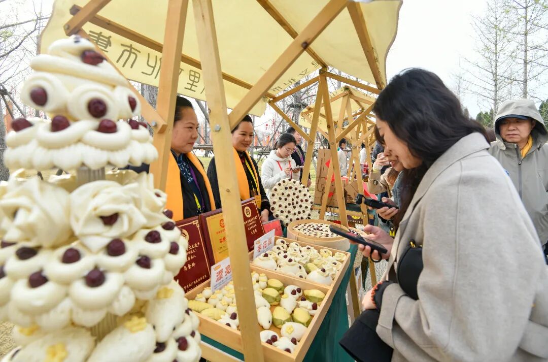 “酥脆香甜,低糖健康。”非遗传承人张春杰正在介绍他的主打产品——张记酥饼,众人品尝后不住称赞。他的手艺来自家传秘方,为早年间从宫廷中流出,至今已传承四代人,一直是新郑城里有名的糕点铺,年节期间常常供不应求,近年又成功申报非遗,成为黄帝故里又一款特色产品。