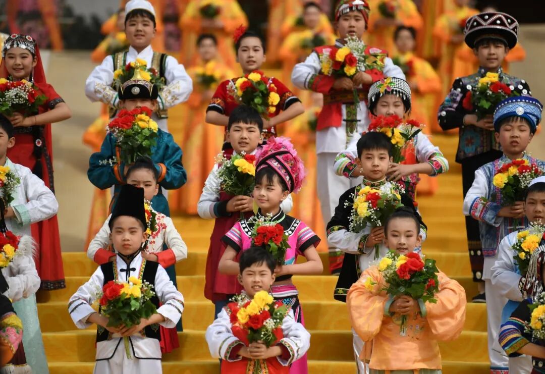 在乙巳年黄帝故里拜祖大典上,来自新郑市轩辕小学的56名学生身着56个民族传统服饰,以稚嫩而嘹亮的歌声唱响黄帝颂歌,成为大典现场一道亮丽的风景线。这些年龄在8岁至11岁之间的孩子们,承担了大典第六项“高唱颂歌”和第九项“天地人和”两个重要仪程的表演任务,用最纯真的方式表达对人文始祖的崇敬之情。