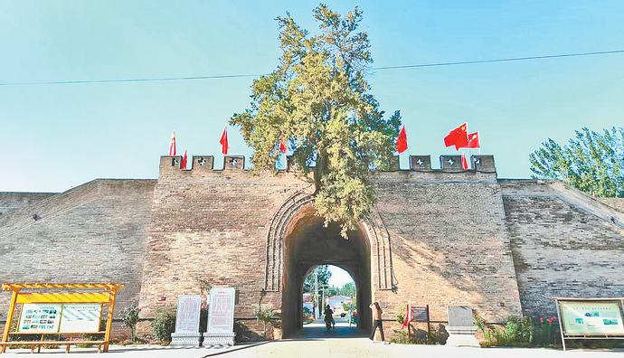 其中,南城门洞正上方那株树龄超500年的古柏尤为奇特,它向北倾卧却枝叶葱郁,远远望去宛如金凤凰展翅腾飞,既守护着南来北往的众生,也见证着洧川新时代的高质量发展,成为古镇一张鲜活的“生态名片”。