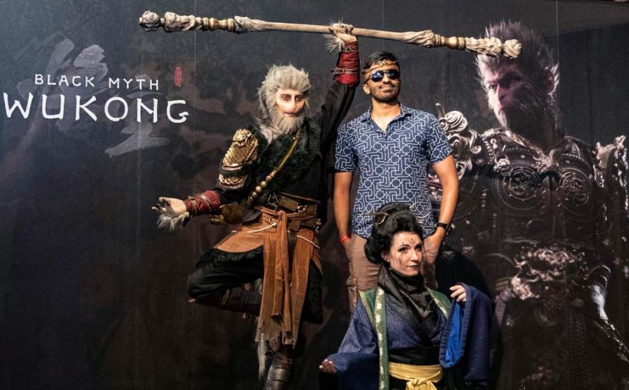 2024年8月,人们在2024年科隆国际游戏展《黑神话:悟空》拍照区拍照。 新华社记者 张帆 摄