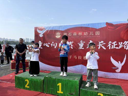 活动巧妙融合红色传承与绿色生态两大元素,将长征精神的内涵转化为亲子可感可知的实践体验。活动中,孩子们在家长的温暖陪伴下踏上跑道,邻里间相互鼓励、彼此协助,共同完成全程挑战。奔跑的脚步不仅让孩子们切身体会到“坚持”的意义,更在协作中感受到“团结”的力量,红色基因里的爱国情怀与奋斗精神,以生动鲜活的方式在幼小的心灵中播下种子。