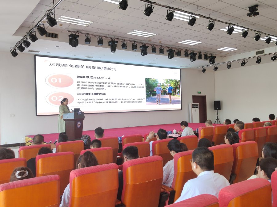 启动仪式结束后,首期专题讲座随即开讲。郑州大学体育学院副教授、运动人体科学博士、硕士生导师、中国体育科学学会运动处方师张蕾教授,以《营养调控联合科学运动——让身体成为天然的“降糖药”》为题,结合前沿科研成果与临床实践经验,深入浅出地解析了营养搭配与科学运动在血糖管理中的协同作用,强调通过建立健康生活方式预防、改善代谢性疾病的重要性。300余名河南省职工医院职工、社区居民及糖尿病等亚健康慢性病患者现场聆听讲座,与会人员互动频繁、气氛热烈。大家纷纷表示讲座内容兼具专业性与实用性,精准对接日常健康需求,提供的科学指导通俗易懂,对提升自身及家人健康管理能力极具帮助。