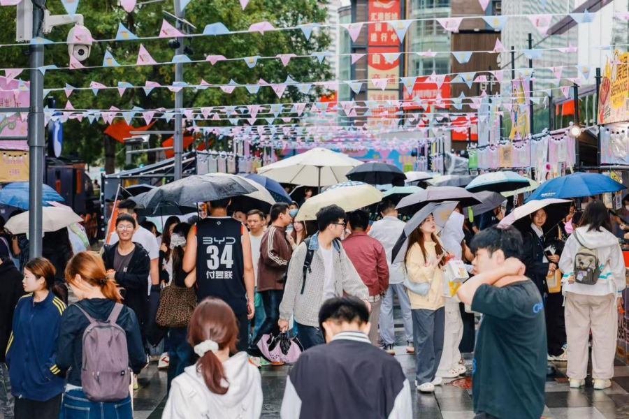 国庆假期首日,“郑州首届甜品节”在二七万象城盛大开幕。尽管天公不作美,淅沥秋雨却未能阻挡市民的热情。上午10时起,活动现场便已人潮涌动,色彩斑斓的雨伞在甜品展区间连成流动的彩虹,空气中弥漫着黄油烘焙的暖香与糖霜的甜味,演绎着“舌尖上的sweet假日”。