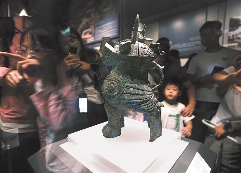 10月5日,河南博物院人流如织,妇好鸮尊、金缕玉衣、云纹铜禁等成为人气文物。