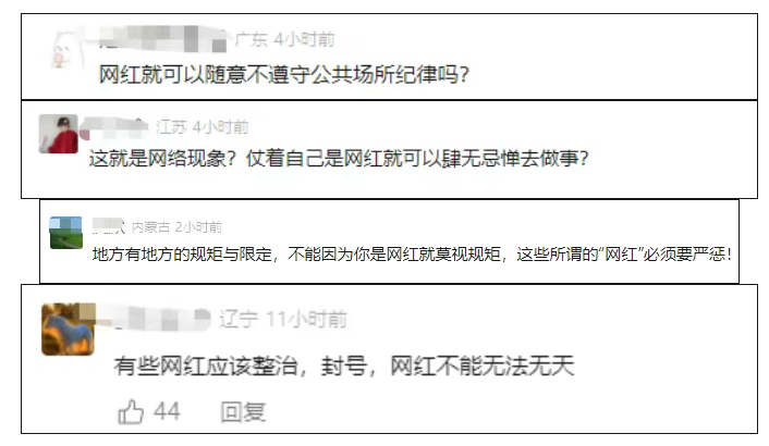 网友:网红不是“越界”通行证