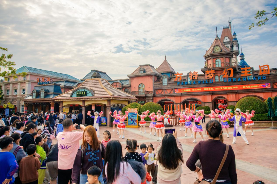 随着电影《三国的星空》热映,众多游客循着电影的足迹来到河南,走进中牟开启一场沉浸式文化之旅,作为中牟文旅的“顶流矩阵”,各大景区以差异化主题活动打造沉浸式消费新场域,推动“一日游”向“多日停留”升级。只有河南·戏剧幻城以百亩高粱地为天然剧场,21个剧场每日上演超百场演出,新增《麦子啊麦子》《薛怀义》等4部新剧引发观演热潮,经典剧目《幻城》《李家村》场场座无虚席,雨天上座率始终稳定在90%以上,综合收入8141.07万元,按可比口径计算增长6.24%,省外游客占比高达80%,成为名副其实的“跨省旅游目的地”;郑州海昌海洋公园借二周年庆与“山海国潮节”双IP叠加,万颗南瓜构筑的“南瓜小镇”吸引亲子家庭打卡,《海豚奇幻秀·豫见海洋》红歌专场千人合唱国歌,非遗打铁花与“燧人取火”技艺融合表演、《山海洛神赋》首演等活动,实现单日客流量突破2万人次;建业电影小镇以“奇遇国庆·一路有戏”为主题,160场互动演出与4大沉浸式剧本杀让小镇变身“移动剧场”,雨中女子打铁花表演更成社交平台爆款,带动夜间消费占比提升至55%。此外,郑州方特旅游度假区双园联动升级体验,欢乐世界打造 “巨幅国旗”造景,上演“盛世欢歌大巡游”, 上线“精怪夜”吸引数万年轻游客打卡;梦幻王国聚焦亲子家庭,“熊出没小丑节”汇聚三大剧团演出与萌宠马戏首秀,与各大核心景区一起,共同构筑起“日夜联动”的文旅消费生态。