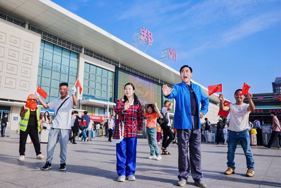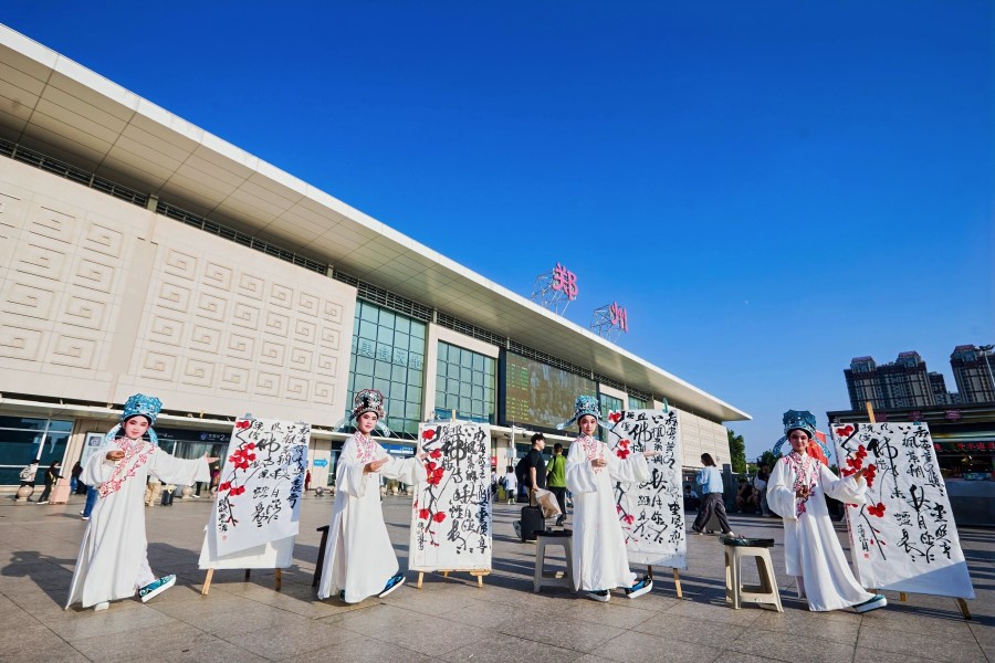 在郑州火车站西广场,一场以“祝福祖国”为主题的戏曲快闪表演吸引了众多市民游客驻足。豫剧《穆桂英挂帅》尽显巾帼豪情,《朝阳沟》演绎质朴乡情,《花木兰》唱响家国担当……演员们身着精致戏服,以扎实的唱功和生动的表演,将一个个经典角色演绎得惟妙惟肖。耳熟能详的旋律不仅勾起了中老年观众的美好回忆,也让年轻一代深切感受到了中华优秀传统文化的独特韵味。现场掌声、喝彩声此起彼伏,精彩的演出成为节日里一道鲜活而动人的文化风景线。
