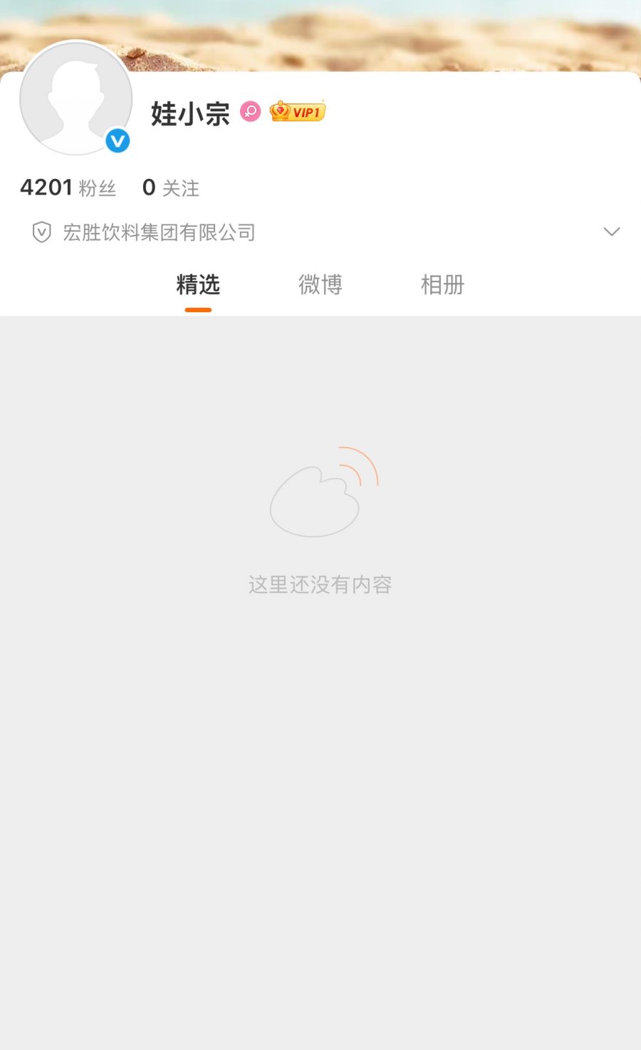 10月11日,一个认证主体为宏胜饮料集团有限公司的"娃小宗"微博账号引发行业关注。该账号审核通过时间显示为9月30日,距离宗馥莉辞任娃哈哈集团董事长仅18天,被外界视为其"独立创业"的首个公开动作。目前该账号粉丝数已达4201人,暂未发布内容。