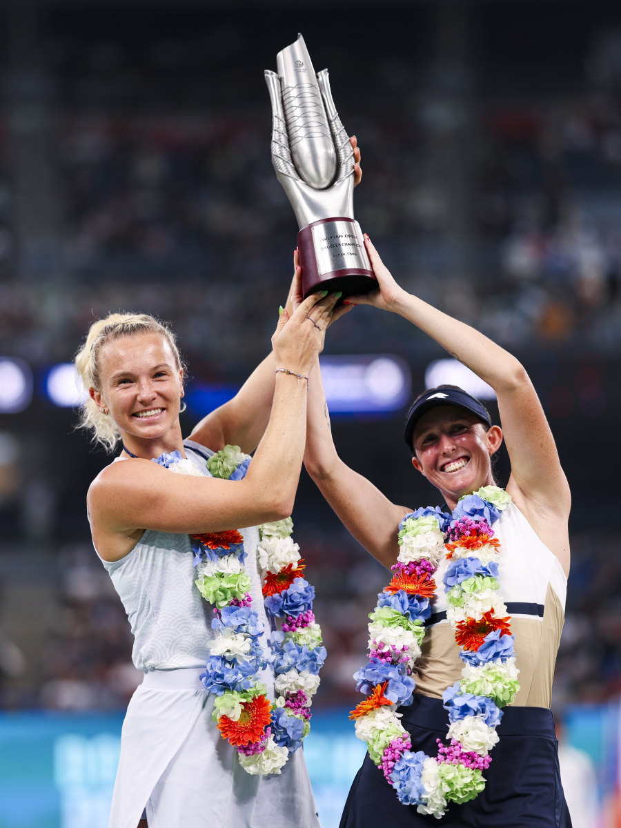 本届武网女双决赛中,捷克/澳大利亚组合斯尼亚科娃/亨特火力全开,最终以6∶3、6∶2完胜本届赛会女双8号种子达尼丽娜/克鲁尼奇,继2024年WTA1000迪拜站后再度携手夺冠,这也是这对组合拿下的第三座冠军奖杯。