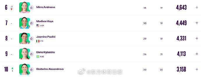 6-10:安德列娃4643、凯斯4449、鲍里妮4331、莱巴金娜4113、亚历山德洛娃3158
