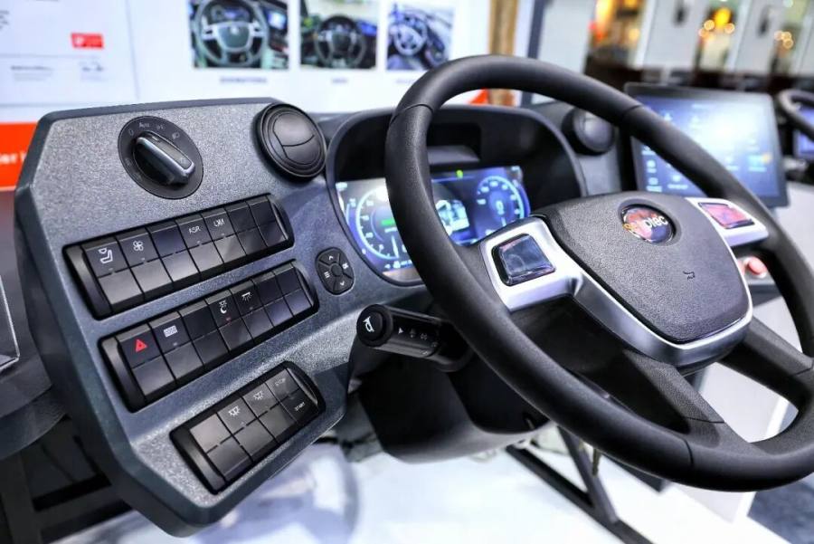 该产品方向盘、仪表、操作开关采用一体化随动结构设计,支持四向调节功能,无论驾驶员身材如何,都能获得舒适坐姿与触手可及的操控体验,有效缓解驾驶疲劳。