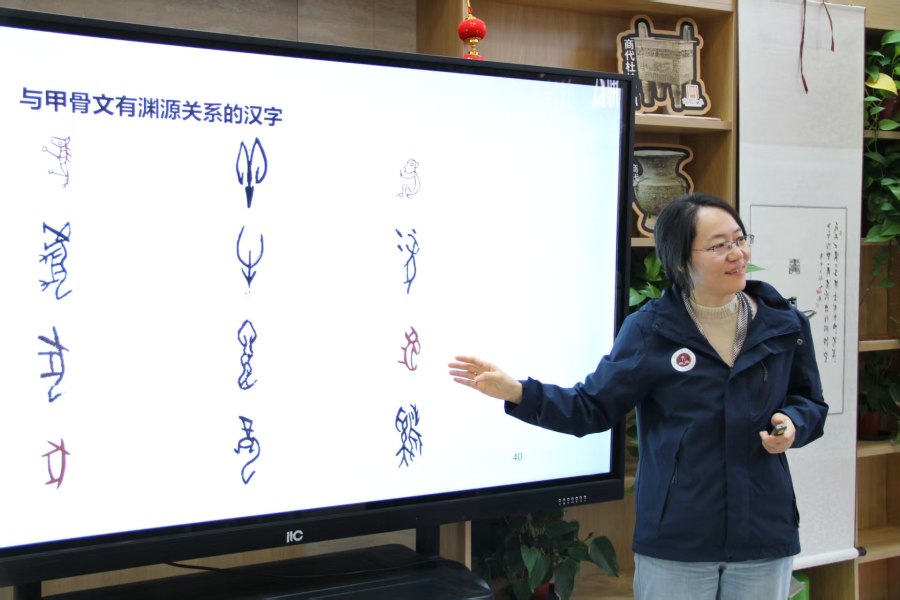 这次带大家“解锁甲骨文新姿势”的,是郑州大学的苗利娟副教授。原来考古学博士讲古文字并不“高冷”,她一开口就把大家拉进了“古代朋友圈”:“咱们现在发朋友圈记日常,殷商人就把事儿刻在甲骨上,这可是三千多年前的‘硬核日记’!”从1899年王懿荣发现“龙骨”的“奇遇记”,到后来考古队发掘甲骨的幕后故事,苗教授用小故事串起了甲骨文的“出道历程”;讲占卜流程时,她还现场比划“钻甲骨、烧火纹”的动作,让“卜辞”不再是课本里的生僻词,反倒像“古代人求答案的小仪式”。