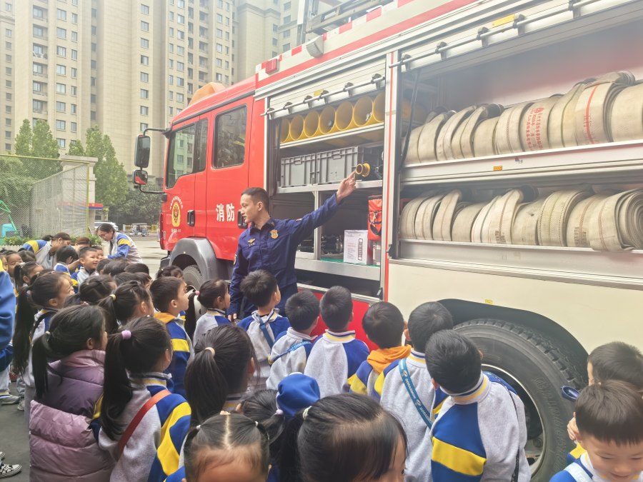 活动中,消防员首先带领大家参观消防车辆装备区,细致讲解水罐消防车、抢险救援车的功能,以及破拆工具、救生器材、空气呼吸器的操作原理与实战用途,还现场演示部分装备使用方法。