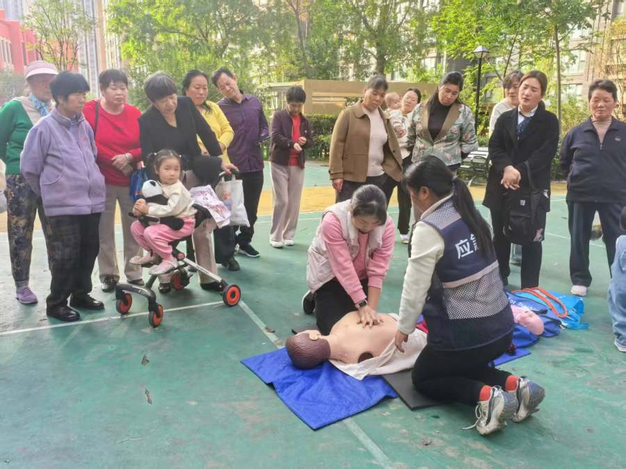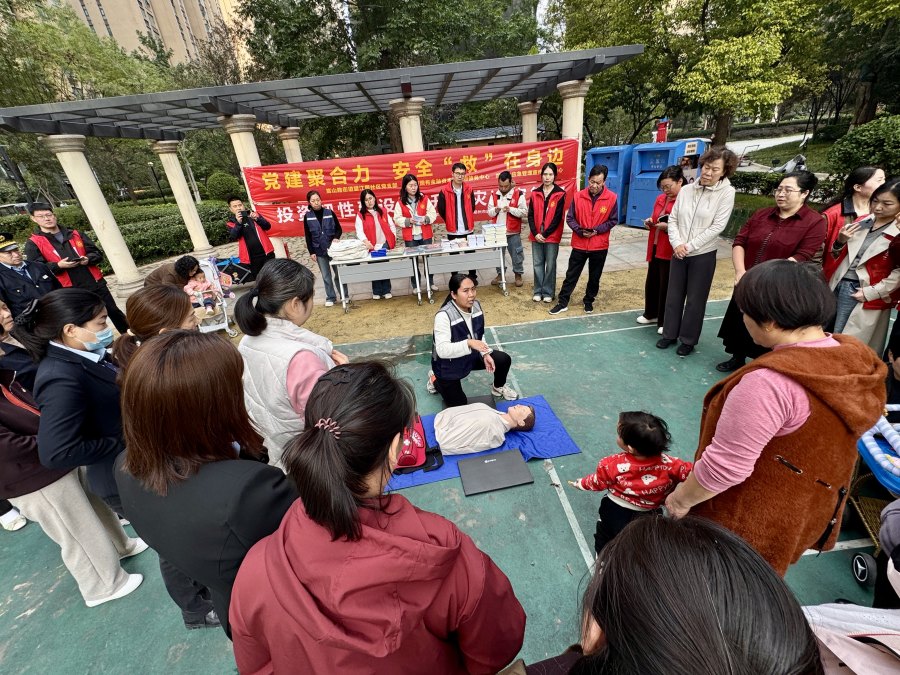 党群心连心,安全零距离。一堂生动的户外安全课,将党建合力转化为守护群众平安的坚实力量。秋高气爽,阳光和煦,二七区望江居社区广场上气氛热烈。一位头发花白的老人正在专业老师的指导下,认真地在模拟人上进行胸外按压。“手臂要伸直,用上身力量向下压!”老师一边纠正动作,一边讲解要点。周围聚满了感兴趣的居民,大家踊跃尝试,都想掌握这门救命的技能。