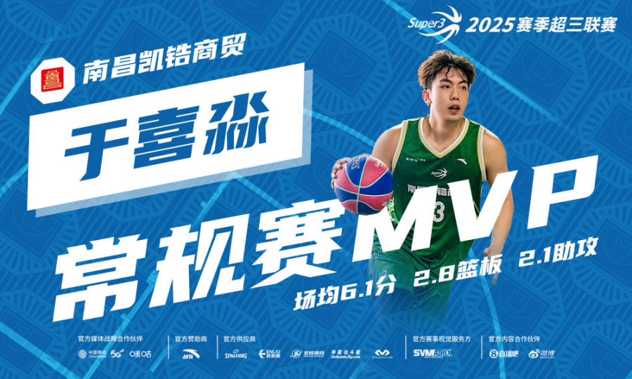 南昌凯锆商贸队的于喜淼荣膺常规赛最有价值球员称号。 图片来源 超三联赛官网
