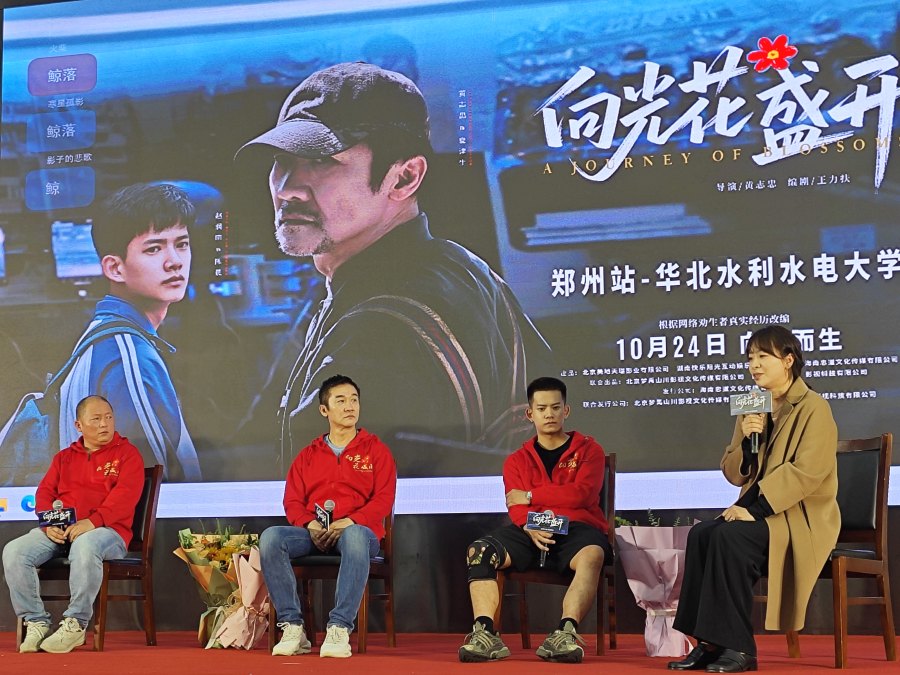 10月15日,改编自“网络劝生者”徐世海真实经历的影片《向光花盛开》在华北水利水电大学(龙子湖校区)举行路演活动。导演兼主演黄志忠、演员赵润南与故事原型人物徐世海一同亮相,与在场学子进行了一场关于生命、救赎与青少年心理健康的深度对话。