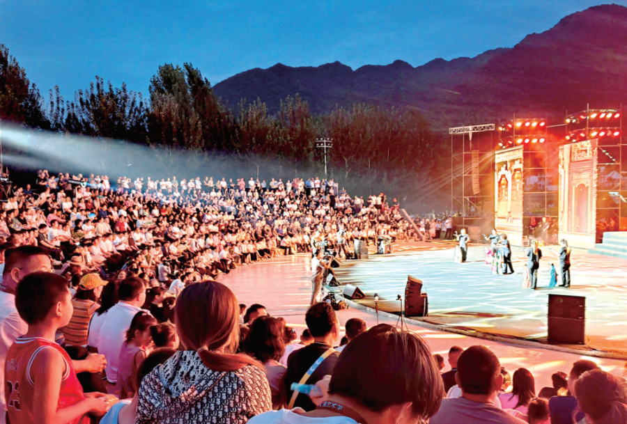 2023年10月11日,游客在西安市鄠邑区蔡家坡村露天剧场观看演出(孙正好/摄)