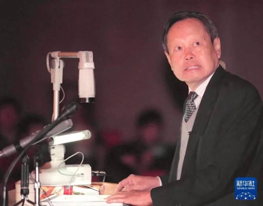 1986年,杨振宁在北京科学会堂向来自全国各地的物理研究生和科研人员讲学。