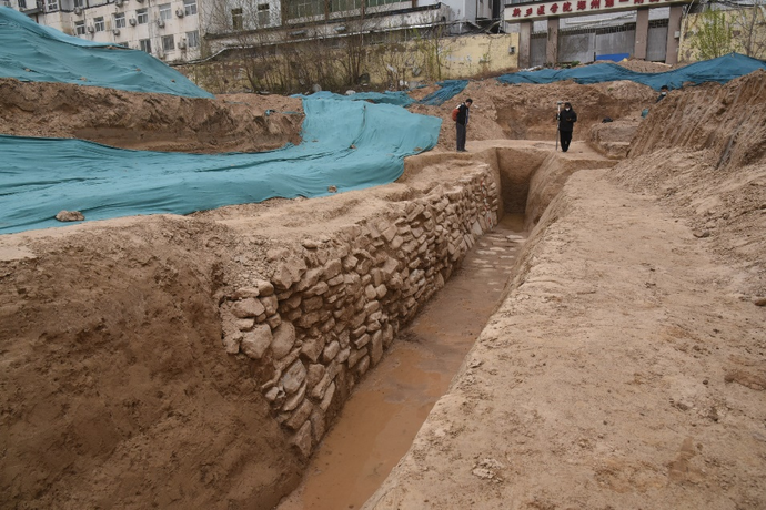 城市水利设施遗存。学界对郑州城垣形态及相关河道的变迁关系进行过专门探讨,但囿于内城水系相关遗存的发现,无法深入研究。2021年至2023年,在内城东南区域的创新街小学北校区、塔湾古街、亳都古巷等项目中,发现3处商代早期沟渠,总长约540米,最宽处达12米,最深处4米。其中一处利用自然河道改造,另两处为人工开凿,沟渠内发现石砌挡水墙和分流设施,从而形成互通关联的水网体系。这一发现表明在郑州商城内部特别是南部区域存在着超乎原来想象的复杂的水利系统,而且这个大型水系兼具排水与城市区划的功能,其发现改写了以往对于郑州商城整体布局尤其是南部格局的认知,对于深入探索商代早期都城的规划理念、功能分区等具有重大价值。