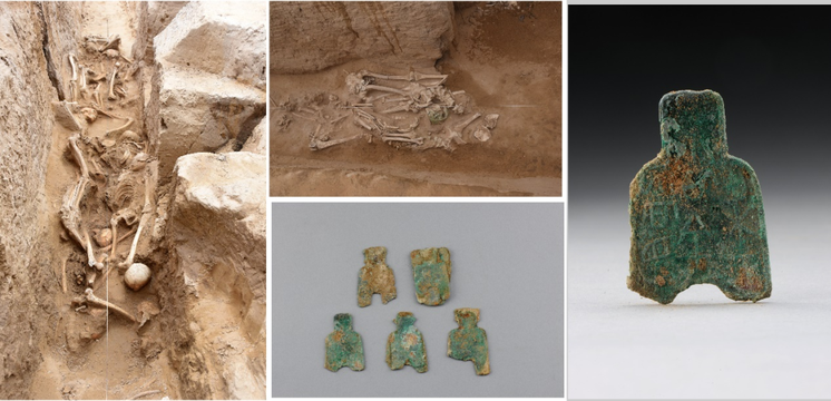 最为重要的是,在城内西南夕阳楼片区发现多条战国沟状遗迹,其中G6、G24清理出有人骨层层堆积的现象,目前发现人骨近80具,大部分为青壮年男性,年龄在14-45岁之间,肢体残缺,部分人骨存在钝器砸伤痕迹,结合出土的铜箭镞,推断与战争有关。G6出土魏国的铜平首布9枚,面文有“釿五二十当孚”“阳晋二斤”“安邑二釿”。为探究战国城城市地位、功能划分以及韩魏关系提供了新证据。