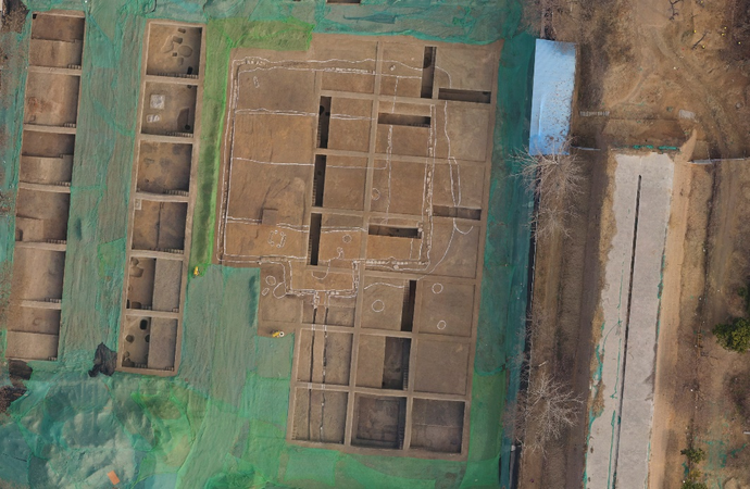 高规格墓葬。2021—2023年,在郑州商城内城东南部书院街项目发现一处商代墓地,其中,“兆域”制度、M2墓主人的身份及金覆面代表的跨区域文化交流问题格外引人注目。“兆域”是目前国内发现的时代最早的兆域,为殷墟王陵东西并列方形兆域的来源提供了直接证据,对探讨我国古代兆域起源和陵寝制度的发展具有重要意义。M2是郑州商城目前出土随葬品数量最多、种类最丰富、组合最完整、等级最高的贵族墓葬。其中出土的扇贝形金覆面器是国内考古中的首次发现,结合同时出土的绿松石镶嵌黄金牌饰、金泡等高等级礼器,充分反映出黄金与中国传统丧葬礼制的深度融合发展。