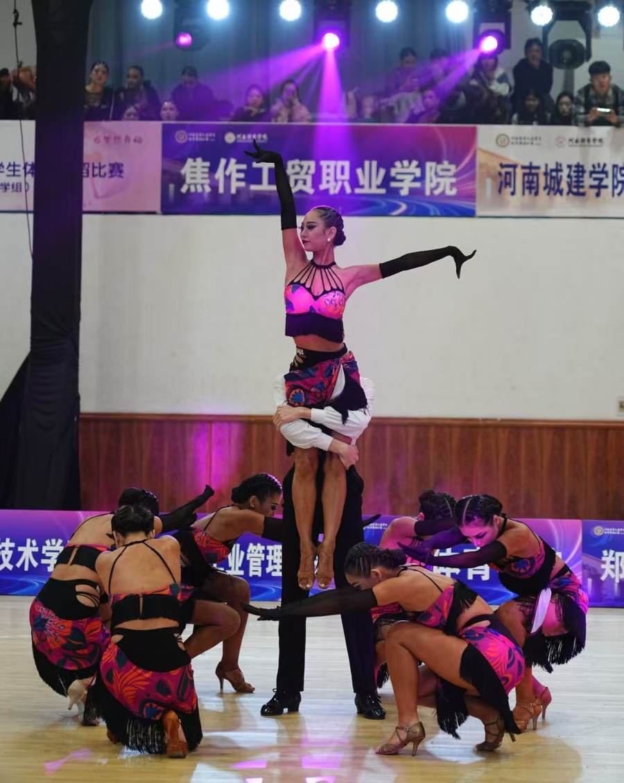 本次赛事由河南省教育厅与河南省体育局联合主办,河南体育学院承办,设有57个组别,1204个竞赛项目。为期2天的比赛中,近900名高校学子作为体育舞蹈爱好者尽情绽放,以优雅的舞姿、精湛的技艺,谱写一曲青春与激情交织的华彩乐章。学校体育是落实“五育并举”的关键环节,承载着独特的育人价值。近年来,河南省教育厅不断健全学校体育政策体系,深入推进体教融合,成功构建起“教学——训练——竞赛”一体化的体育发展新格局。而体育舞蹈作为一项活力四射且广受师生青睐的运动项目,在营造浓厚校园体育氛围、助力学生全面发展等方面发挥了重要作用,成效十分显著。
