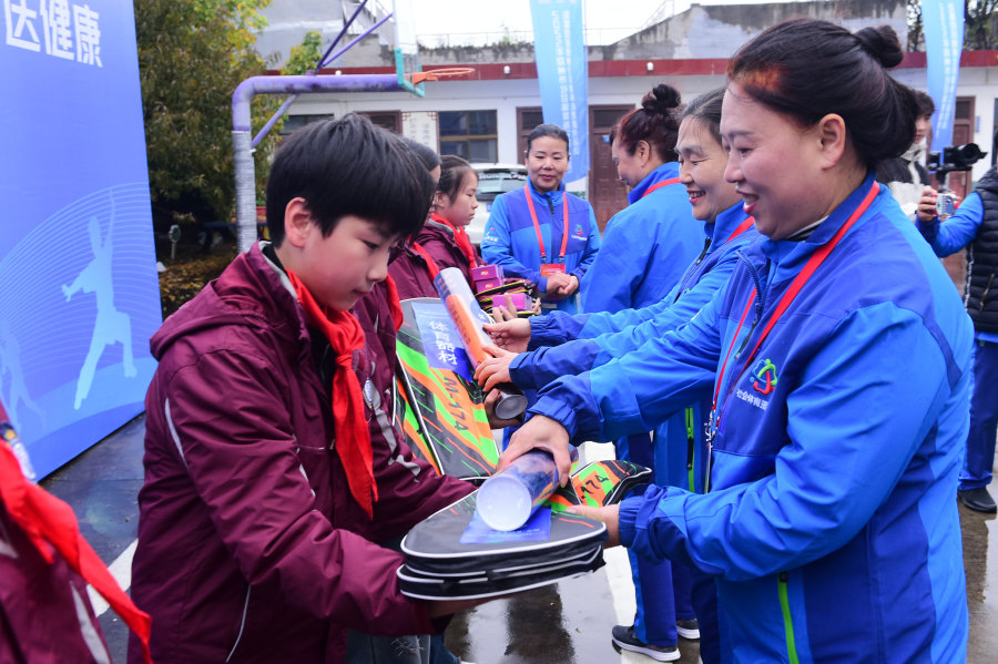 对于来到学校领着他们一起健身、一起玩耍的社会体育指导员来说,登封市南店小学的孩子们一点也不觉得陌生。连续多年来,郑州市体育局把南店小学确定为郑州市社会体育指导员走基层、送健康的固定服务站点之一,每年都会派出指导员到校义务教授孩子们健身知识和技能。除了公益培训活动外,社会体育指导员们还向南店小学赠送了篮球、足球、乒乓球拍、羽毛球拍、跳绳等体育用品,为同学们课余运动提供更多选择。该校负责人表示,“此次活动不仅为孩子们带来专业的运动指导,更送来承载关怀的体育器材,将有效丰富校园体育教学,助力学生在运动中强健体魄、快乐成长。我们会教育同学们珍惜学习机会,将体育精神融入日常。”