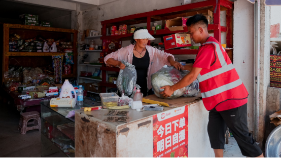 2022年起,拼多多发起“西进行动”,通过模式创新和物流补贴,促使西行包裹物流成本大幅下降,村民网购也更划算了。如今,每天进到“乡村CBD”的包裹超过100件,旅游旺季甚至接近200件;其中超八成来自拼多多,就连公保加也从这里“进货”拖鞋、雨伞、袜子、牙膏等生活用品。
