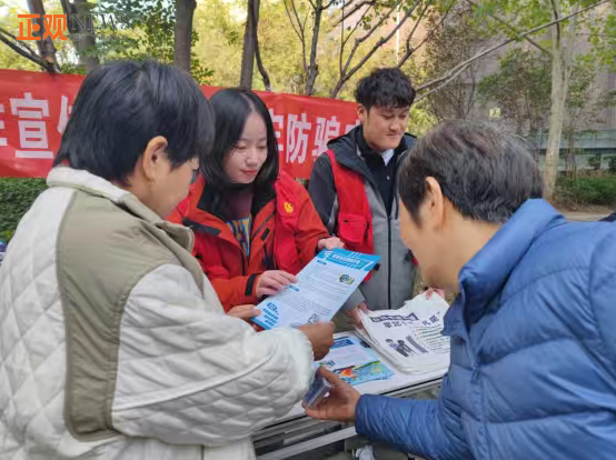 10月21日上午,郑州高新区梧桐办事处祝福社区在祝福红城二期小区广场摆起“反诈小摊”,开展“面对面、零距离”反诈宣传活动,将反诈知识精准送达居民身边。