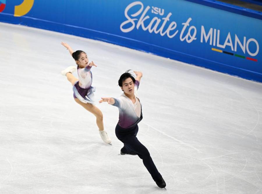 9月20日,张嘉轩/黄一航(右)在国际滑联花样滑冰奥运资格赛双人滑自由滑比赛中。 新华社记者 张晨霖 摄