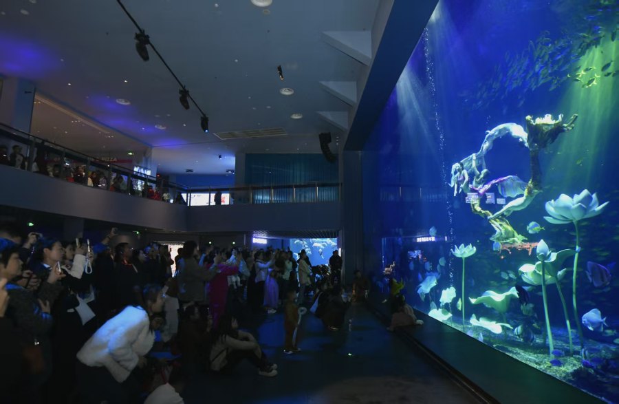当日下午2时,参访团首站抵达郑州海昌海洋公园。在奇妙海洋馆内,融合传统神话与现代声光电技术的《山海洛神赋》演出,为嘉宾呈现了一场视听盛宴。随后在极地动物馆观看的白鲸音乐秀《白鲸之恋》表演,通过演员与白鲸的默契互动,展现了人与动物之间的和谐共生。