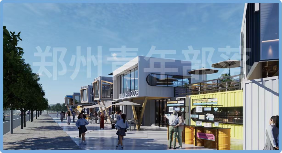 青年部落紧扣“以文塑旅、以旅彰文”核心理念,以“中国首个城市轻文旅、创新夜经济、户外文创商业综合体”为定位,通过河南18个地市的文创IP主题场景创新、业态多元组合与空间运营活化,构建“文化体验+商业消费+社交休闲”的生态闭环。未来,这里将汇聚上千种业态,内容上形成“户外万达”,形式上以自由叠拼的文创集装箱、艺术造型移动商铺、微环境景观创意将河南历史文化底蕴与现代美学融合,打造可游逛、可沉浸式体验的消费新空间。