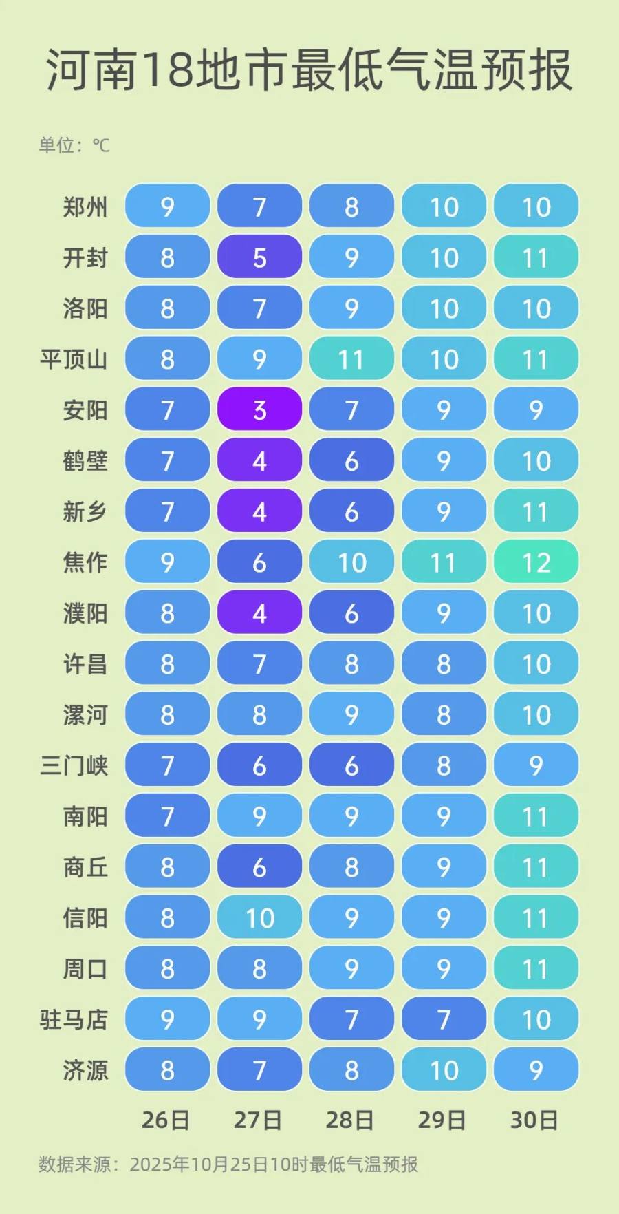 随着低槽东移,今天白天,河南省大部有小雨或零星小雨,预计从夜里开始,一直到27日白天,晴朗都将在线。27日夜里,北部将有小雨。