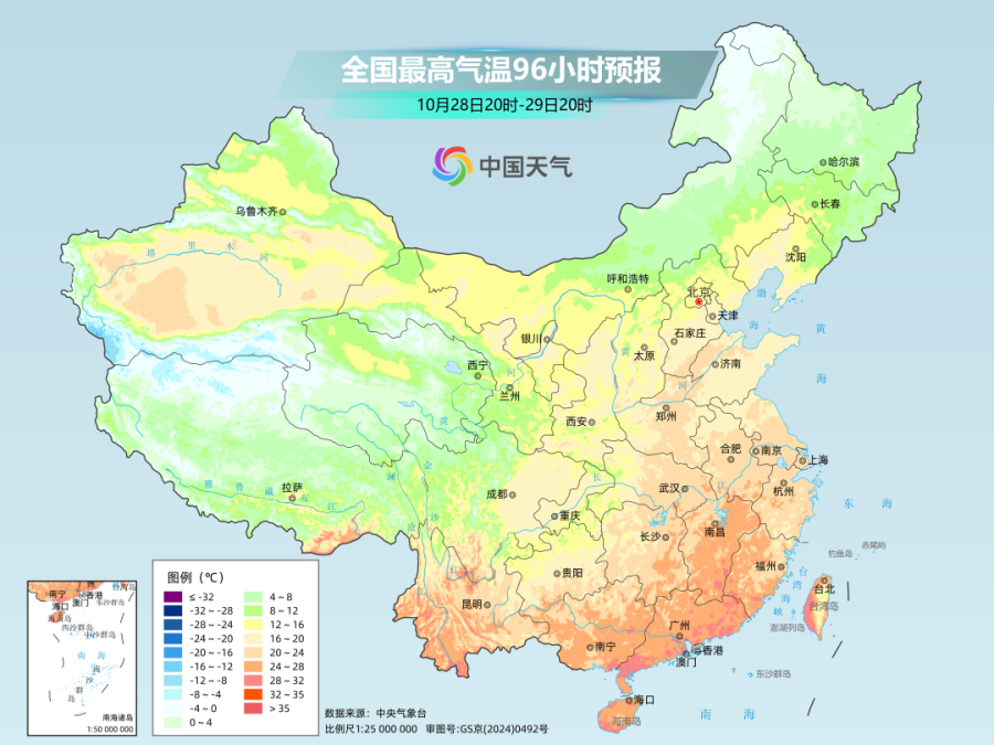 像郑州,28日最高气温将达到20℃,济南29日20℃;江南一带最高气温也可能重返25℃,比如南昌29日25℃;华南不少地方会接近30°C,最低气温在20°C上下,体感比较舒适。