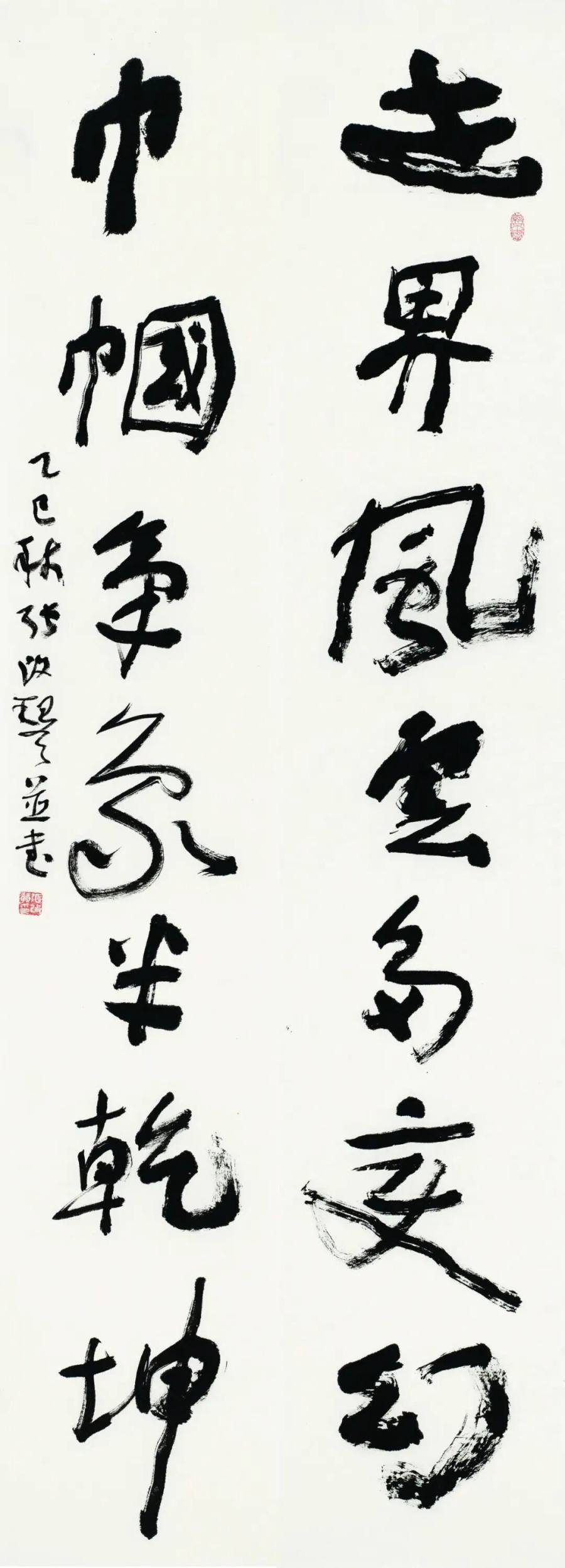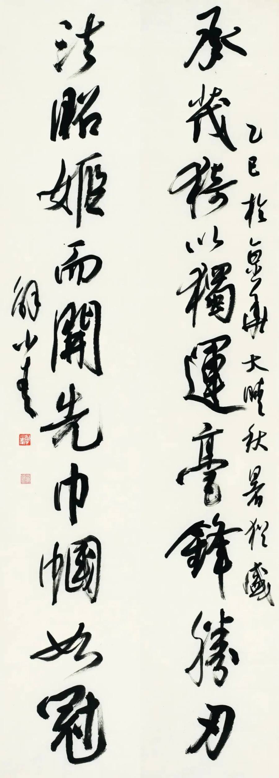 正因如此,展品中既有温婉细腻的小尺幅行楷,也有高约两米、笔力雄健的草书、篆隶巨制。这些作品出自老、中、青三代女书家之手,作者年龄上至80岁有余、下至20岁出头,跨越半个多世纪,折射出女性书写承传有序的状态和天然的设计感。展品真草隶篆行诸体兼备,风格或清丽婉约,或古朴雄浑,以坚韧、自信、潇洒、磅礴的气象,彻底打破了人们对女性书写仅局限于“闺阁才思”的刻板印象。“取法经典,气象正大,融汇当代,立足传统”成为此次展览的特点,既是向历史致敬,也是对当下女性艺术成就的充分肯定,更表达了对女性书法艺术未来发展的深切期许。