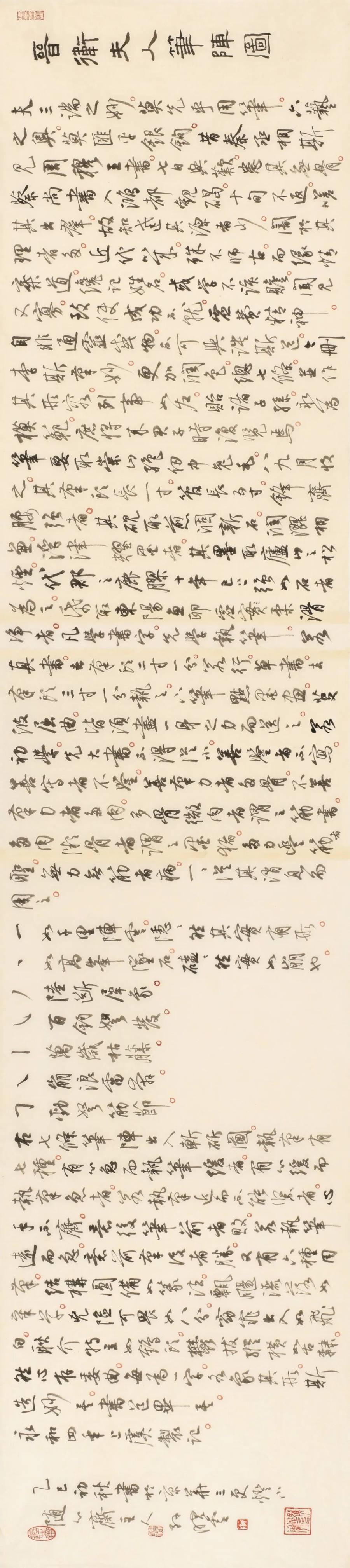展览开篇处是我书写的《晋卫夫人笔阵图》,将《笔阵图》这篇古代书法经典重新展现在世人面前,统领整个展览的深层逻辑——在全球妇女峰会召开之际举办的此次展览,是一次跨越千年的文化回响,更是一次具有主体意识的艺术宣言:女性不仅是书法的学习者与传承者,更是书法法则的奠定者与理论的开拓者。
