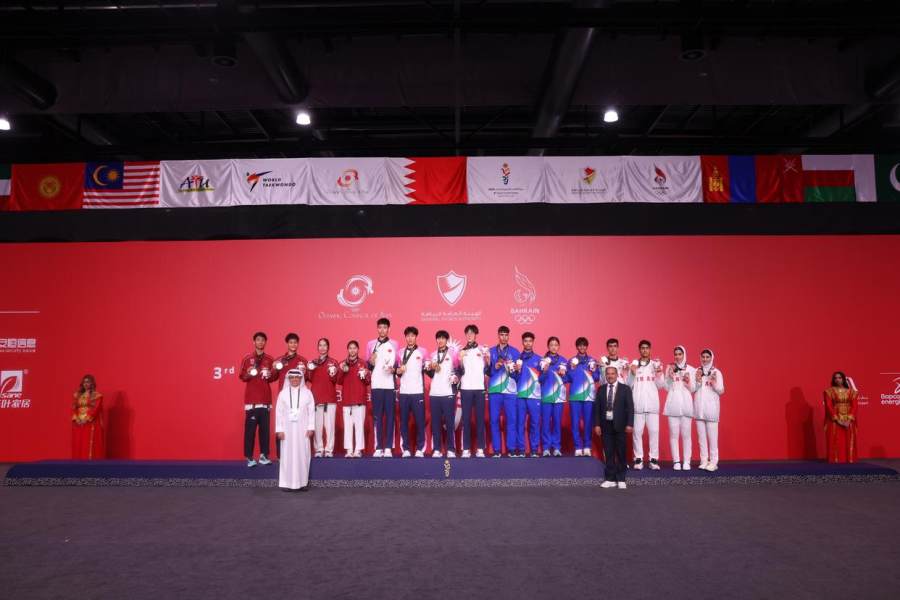 跆拳道混合团体比赛颁奖仪式。 巴林亚青会组委会供图