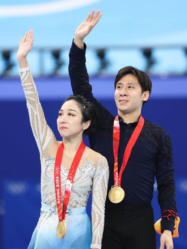 2022年2月19日,北京2022年冬奥会花样滑冰双人滑自由滑比赛在首都体育馆举行,中国选手隋文静/韩聪夺得双人滑冠军。 新华社记者 兰红光 摄