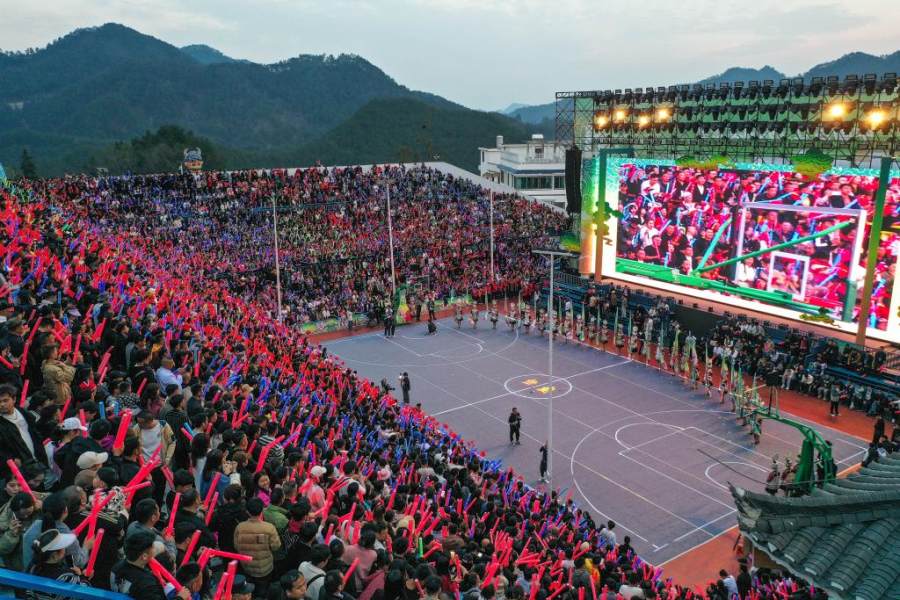 观赛体验感也在不断提升。台盘村村委会主任岑江龙介绍,“村BA”火爆出圈后,当地不仅对篮球场、停车场、公厕等基础设施进行了改造升级,还将民族文化深度嵌入篮球比赛,在中场休息时穿插开展苗族飞歌等非遗表演,让观众沉浸式体验民族风情。今年7月,室内篮球场的建成投用,让台盘村具备了在雨天办赛的能力。