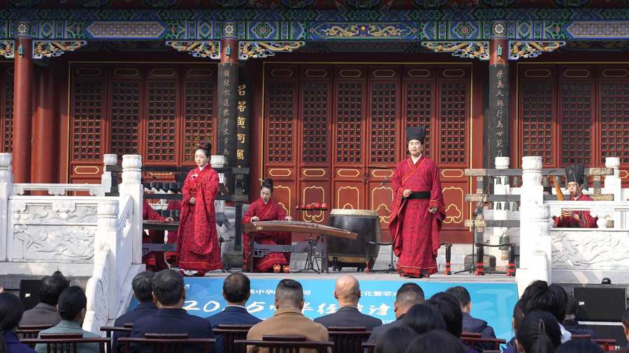 10月28日下午,由河南博物院华夏古乐团呈现的“重阳诗乐会——2025中华经典诗词论坛郑州诗词专场演出”在郑州文庙上演。作为“2025中华经典诗词论坛”的预热活动,本场演出以诗乐相和的形式,带领现场观众感受中华经典诗词的隽永韵味。