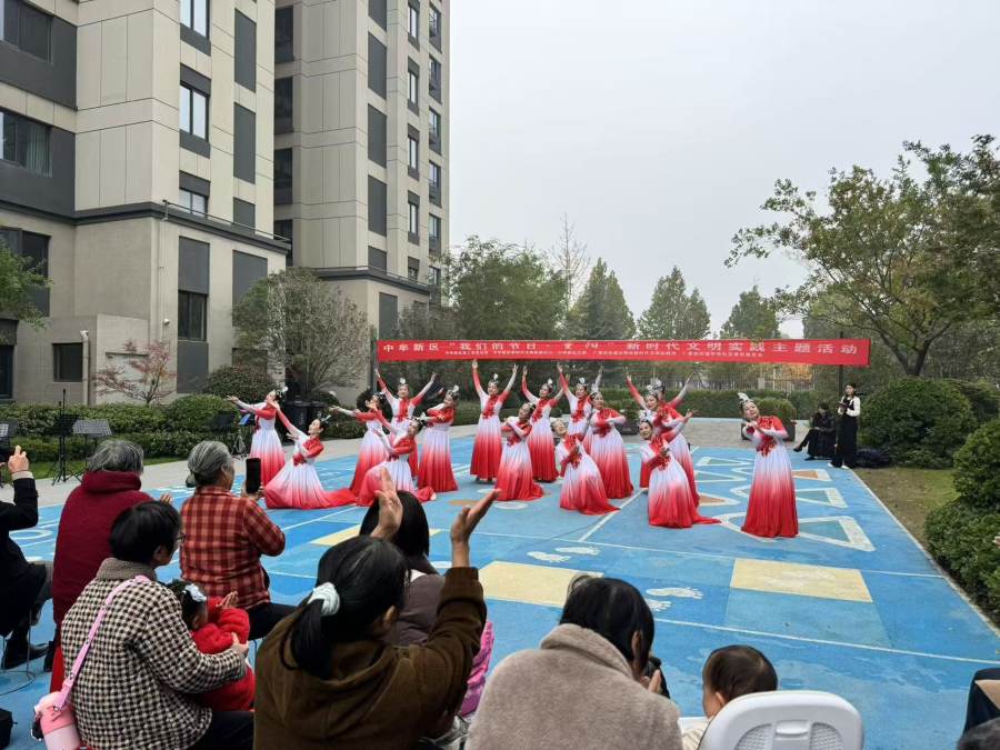 学苑社区联合中牟新区党工委宣传部、中牟新区新时代文明实践中心、中牟新区文联、广惠街街道新时代文明实践所、中牟县公安局、中牟县司法局等多家单位共同举办“我们的节日·重阳”主题活动,通过“文艺汇演+反诈宣讲+便民服务”的多元形式,为辖区老年居民送上了一份丰盛温暖的节日关怀。