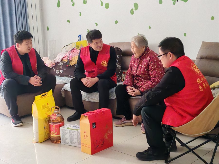 绿城社区党支部书记及工作人员带着浓浓的节日祝福和慰问品,专程走访看望了辖区92岁高龄的国企退休老干部郭惠芳老人,为她送去党组织的关怀与温暖。工作人员与郭惠芳老人促膝长谈,亲切地拉家常、问冷暖,详细询问了老人的身体状况、生活起居和存在困难,认真倾听老人回忆往昔的工作岁月。郭惠芳老人虽已高龄,但精神矍铄,对社区的关心表示感谢。工作人员将精心准备的大米、食用油、牛奶、鸡蛋等慰问品送到老人手中,并祝愿老人健康长寿、生活幸福。