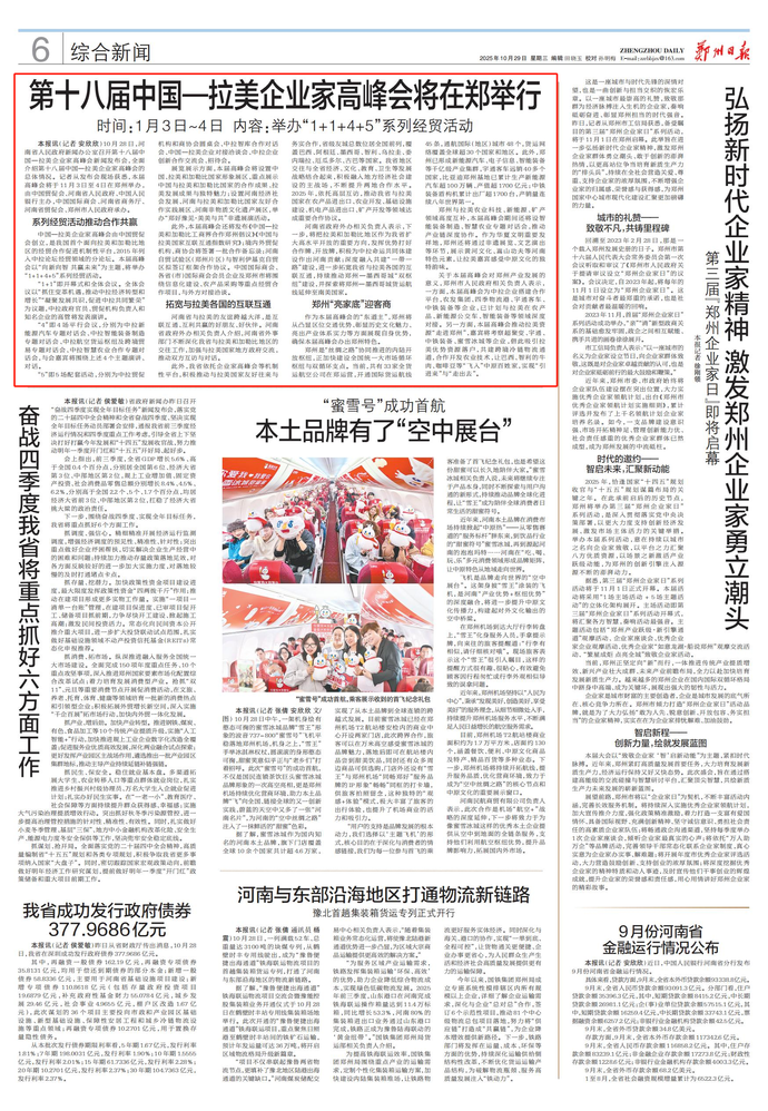 郑州与拉美农业科技、新能源、矿产领域高度互补,本届高峰会期间还将设智能装备制造、智慧农业专题对话会,推动产业链深度协作。作为华夏文明重要发祥地,郑州还将通过非遗展览、文艺演出等环节,展示黄河文化、嵩山功夫等河南特色元素,让拉美嘉宾感受中原文化的独特韵味。