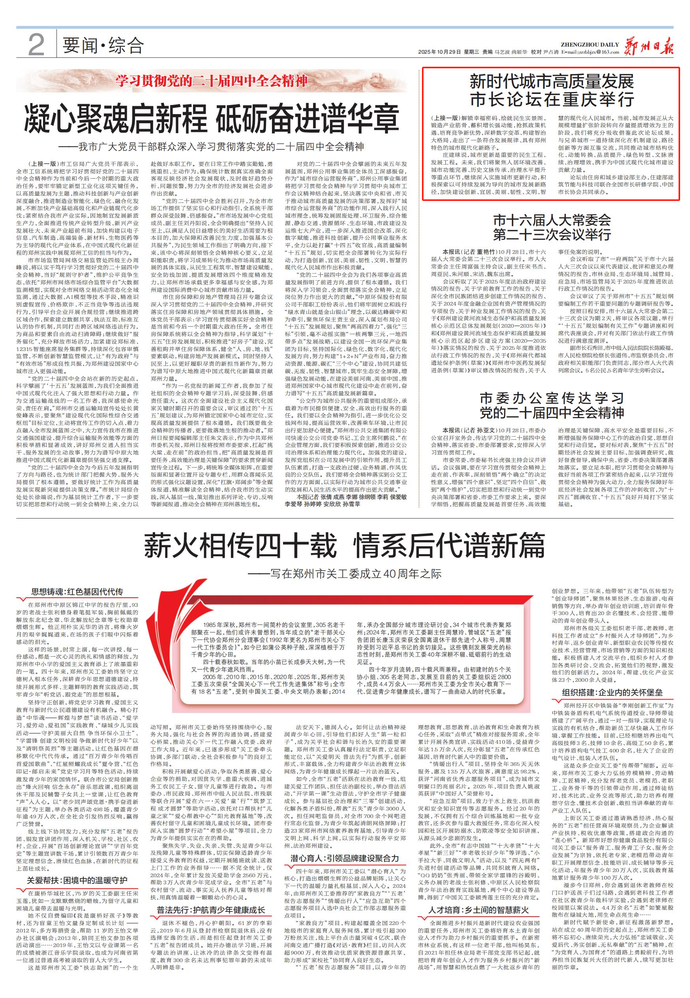 庄建球表示,郑州是中部地区重要的中心城市、国家历史文化名城、国际性综合交通枢纽城市,是中部先进制造业基地、商贸物流中心、对外开放门户和区域性科技创新高地,“天地之中、黄帝故里、功夫郑州”是这座城市的靓丽名片。近年来,我们深入学习贯彻习近平总书记关于城市工作重要论述,全面落实中央和省委城市工作会议精神,认真践行人民城市理念,坚持以城市更新为重要抓手,突出战略规划、构建全域坐标系,解锁幸福密码、绘就民生实景图,锻造产业筋骨、蓄积增长强动能,抢抓政策机遇、培育竞争新优势,深耕数字变革、构建智治大格局,走出了一条符合发展规律、具有郑州特色的城市现代化新路子。