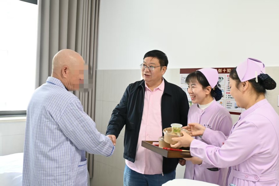 临近中午,一场温馨的送面活动在病房内展开了。“老人家,重阳节安康!给您送一碗特别的长寿面,这可不是普通的面,它是我们医院特制的‘扶正汤’长寿面,里面用了牛蹄筋、鲜鱼及一些中药材,文火慢熬了48个小时,把精华都融在汤里了,营养特别足,也容易吸收。就是希望这碗面能帮您补补身体,增强抵抗力,祝您早日康复,健康长寿!”在颈肩病区,院长张文杰将一碗热腾腾的药膳面送到了患者王先生的手中。“没想到在医院也能过个热闹的重阳节,医生护士跟亲人一样贴心!”患者王先生接过这碗药膳面,脸上洋溢着幸福的笑容。
