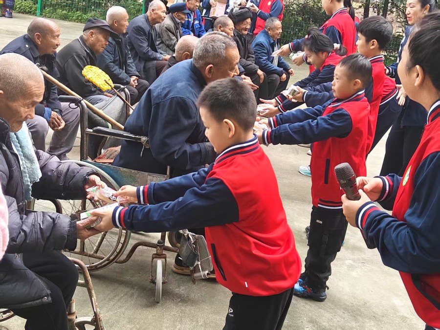 上午10时,姚家镇敬老院院内暖意融融,活动在热烈的氛围中拉开帷幕。中牟县云凡乐歌助残中心的孩子们以饱满的热情登台,用精心准备的节目传递温情。非洲鼓表演《孝心到永远》节奏明快,孩子们认真的神情、有力的鼓点,瞬间点燃了现场气氛;手势舞《中华孝道》动作整齐,孩子们用灵动的手势诠释着“百善孝为先”的深刻内涵;中英文朗诵《诵重阳》更是将重阳习俗与对老人的真挚祝福融入其中,赢得了老人们阵阵掌声。节目结束后,工作人员和孩子们将提前准备好的慰问品一一送到老人手中,让老人们感受到浓浓的关怀。
