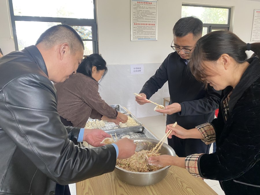 紧接着,热闹的包饺子互动环节开启。镇领导与助残中心工作人员、孩子们及敬老院老人们围坐一堂,揉面、擀皮、包饺子,分工协作,其乐融融。孩子们虽然动作略显生疏,但在大人的耐心指导下,一个个形态各异的饺子逐渐成型;老人们则一边包饺子,一边分享着过去的生活趣事,现场欢声笑语不断,俨然一幅温馨的“大家庭”画卷。
